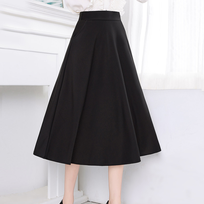 防走光中长款带口袋半身裙女春秋季弹力高腰A字伞裙显瘦半截群子