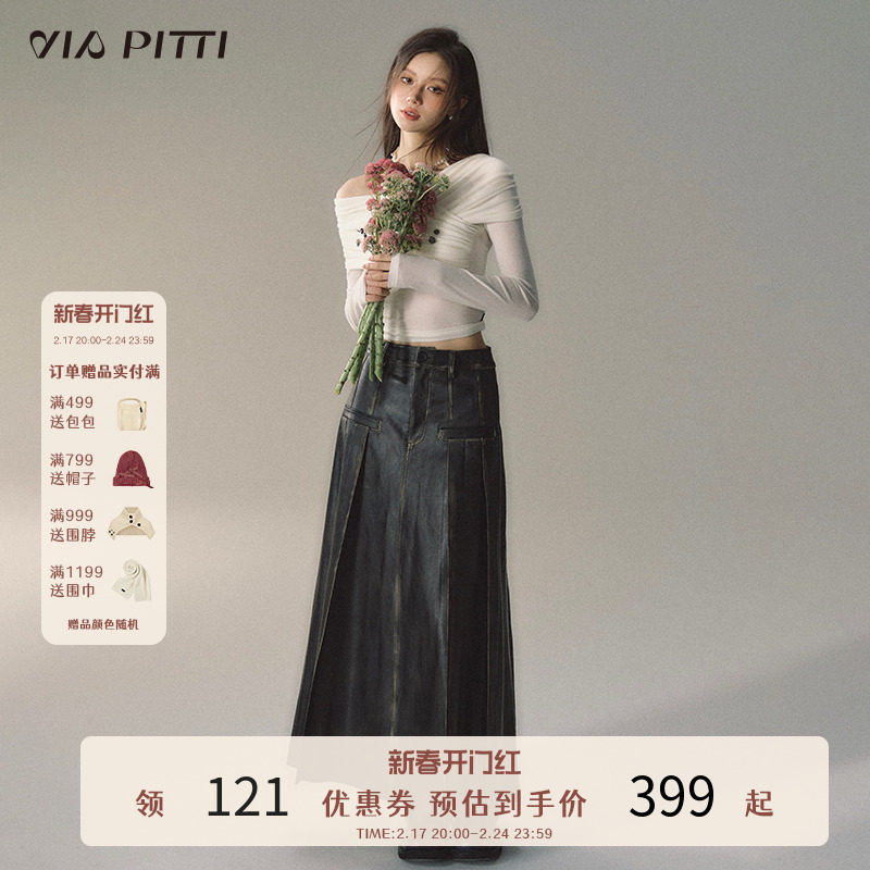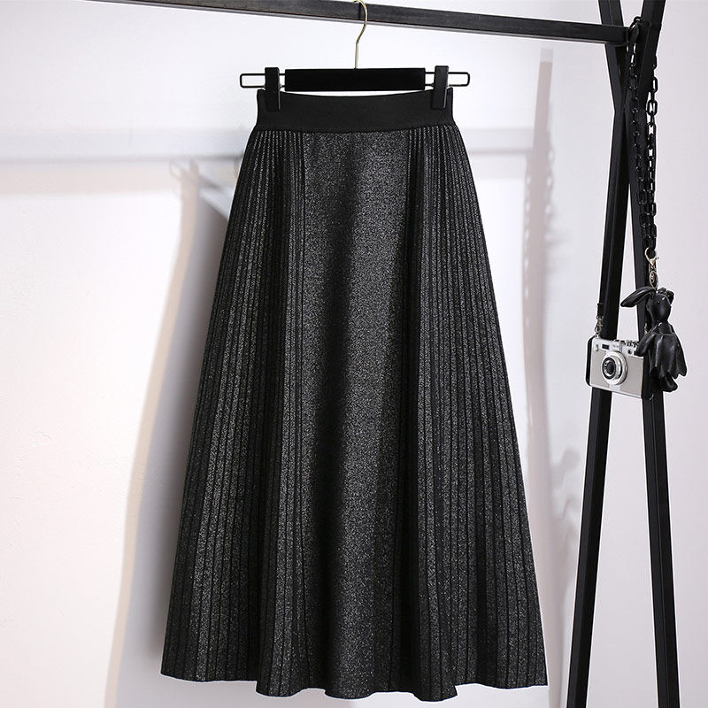 18572 垂坠网纱半身裙秋冬女中长款显瘦春亮丝a字百褶纱裙小个子