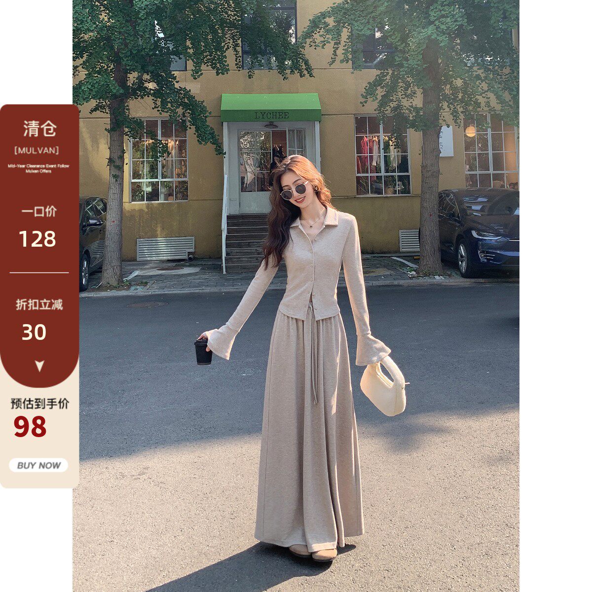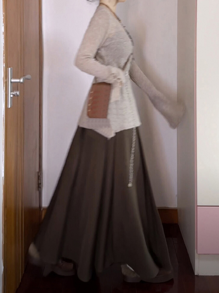 MULVAN 针织半身裙女高腰抽绳显瘦a字裙子慵懒风气质长裙垂感伞裙