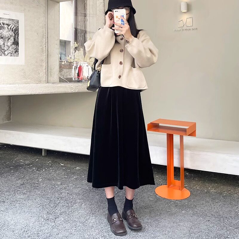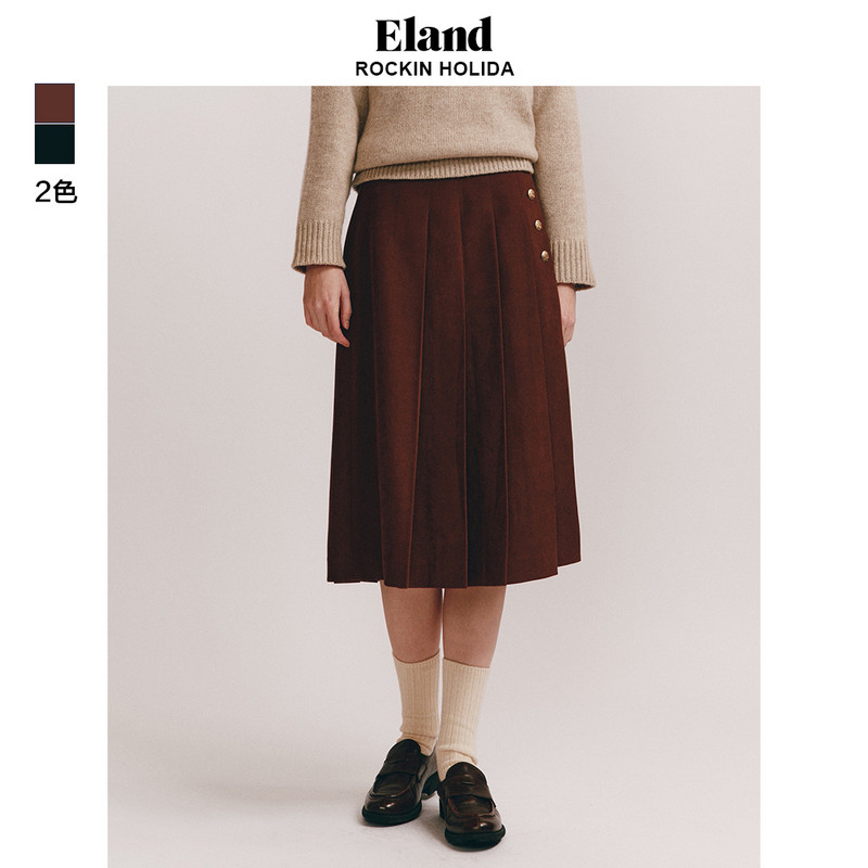 鹿皮绒半身裙秋冬女中长款百褶裙2022新款高腰显瘦a字长裙小个子