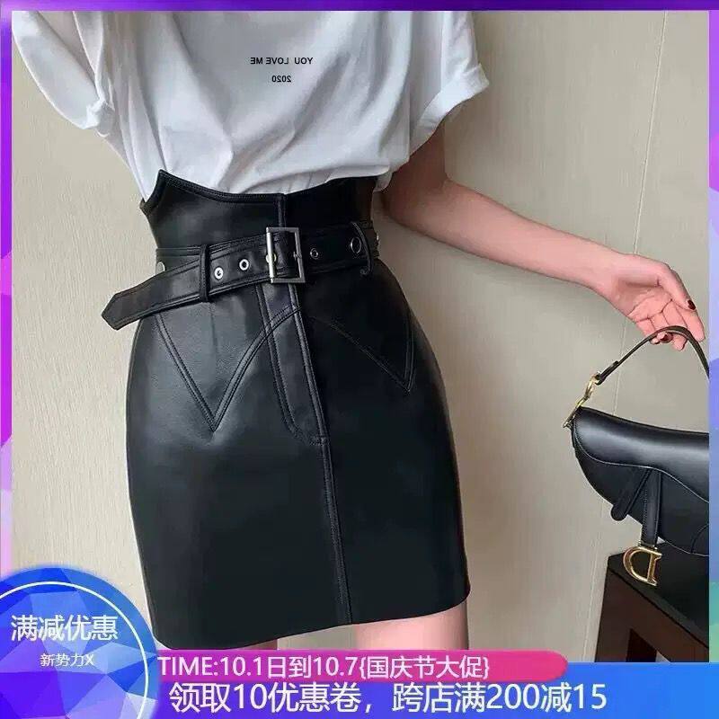 海宁2023真皮皮裙时尚百搭高腰显瘦a字包臀短半身裙秋冬新款女装