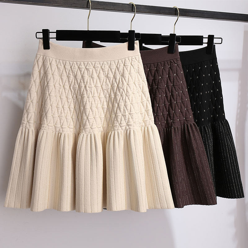 针织半身裙女秋冬短款设计感杏色a字高级感超好看半裙格子短裙