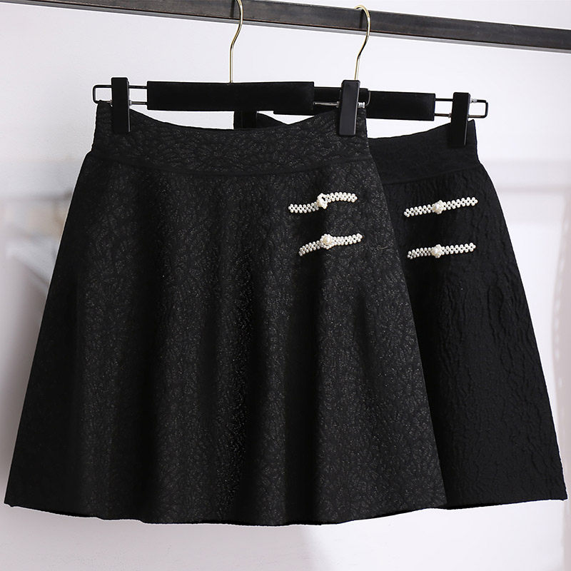 黑色半身裙女秋冬短裙高腰冬季遮胯半裙针织a字显瘦百搭裙子