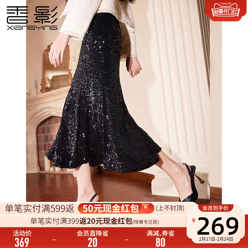 高腰半身裙女小个子短裙秋冬2023新款针织半裙蓬蓬裙亮丝a字裙