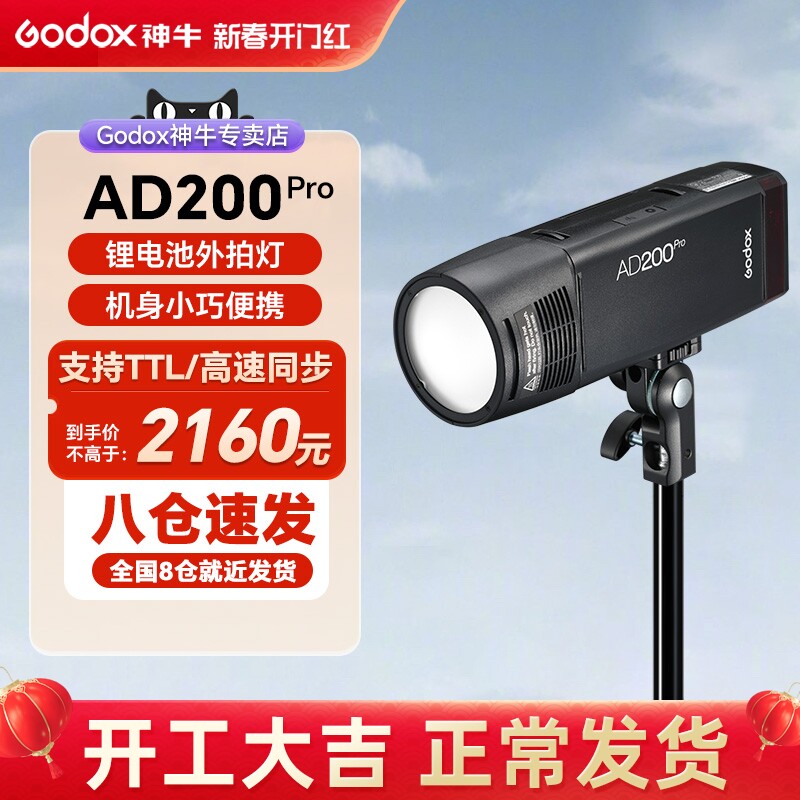 godox神牛AD200pro外拍闪光灯锂电池TTL摄影灯便携单反相机口袋双灯头