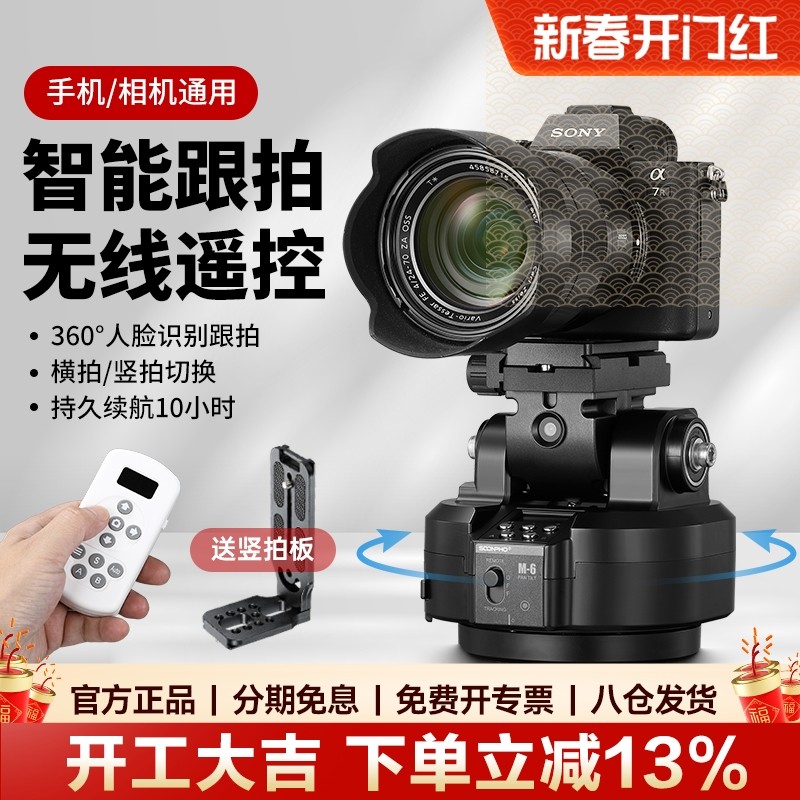 新品 苏奔M6电动云台无线遥控360度旋转全景云台AI智能跟踪人脸识别手机直播视频拍摄单反相机摄像头两轴电控