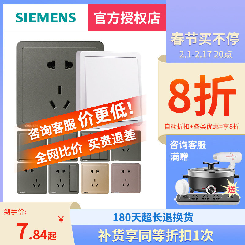 西门子双开单控开关致典烟金灰银色86型家用墙壁暗装全屋套餐面板