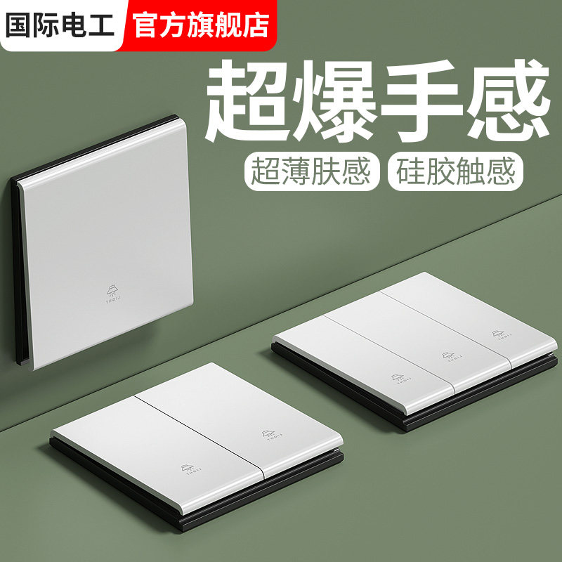 国际电工灯开关家用电源电灯单开双开三开单控四开一开双超薄面板
