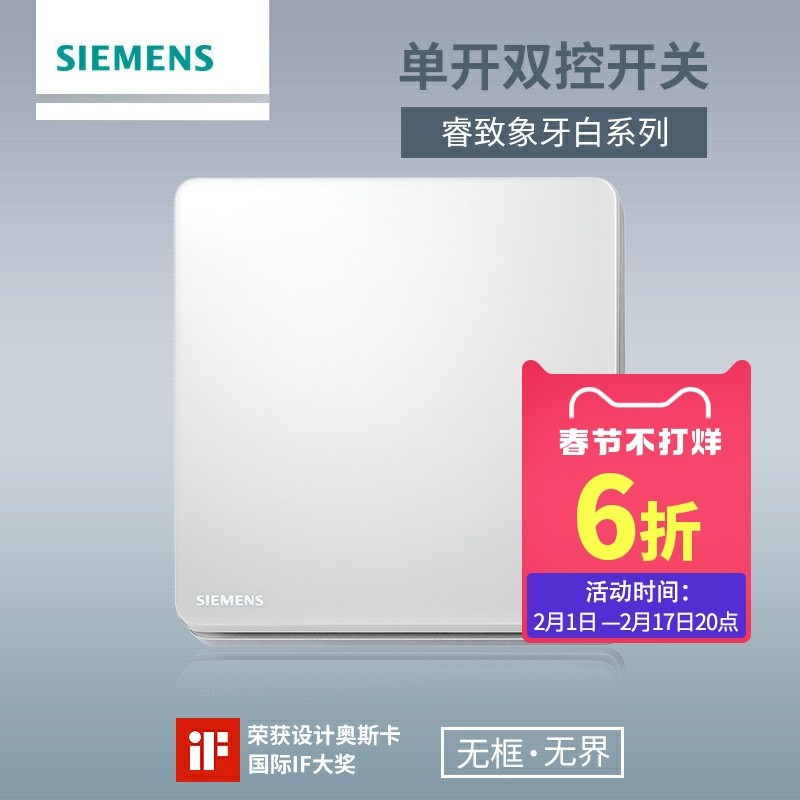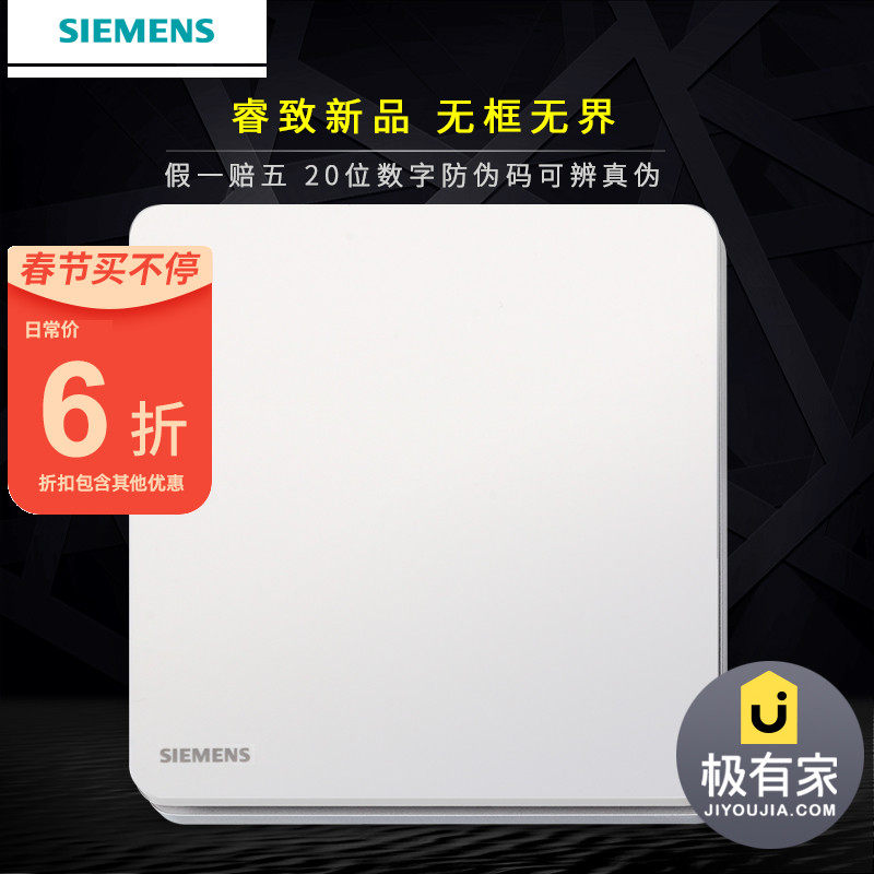西门子双开双控开关 致典雅白色家用二开电灯 单联面板