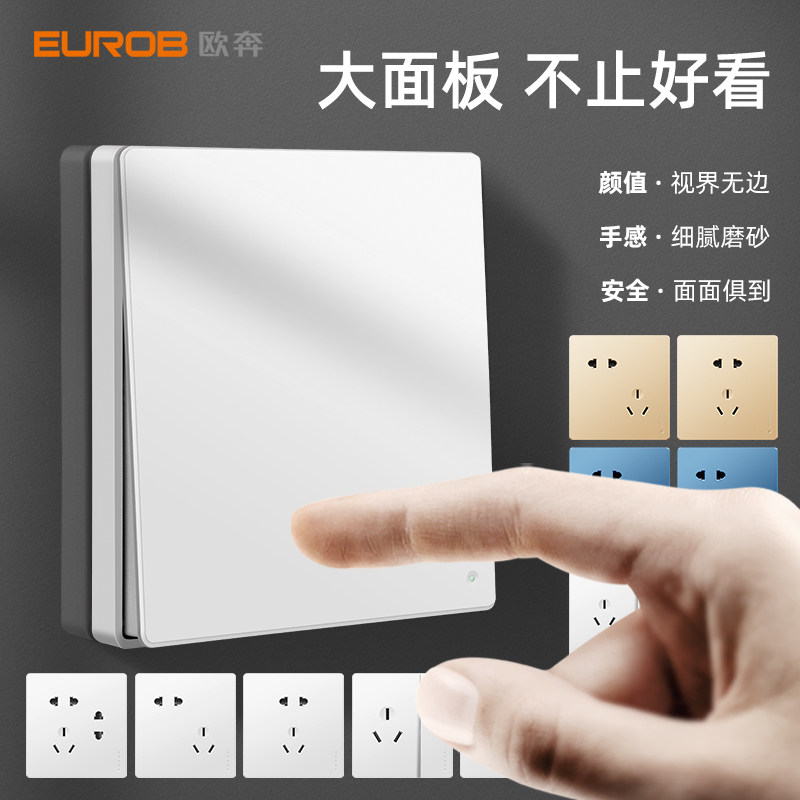 欧奔纯平大板白色86型五孔二三插带双控单开墙壁开关插座面板多孔