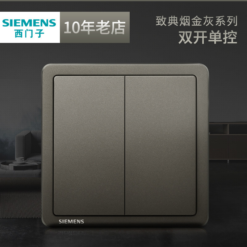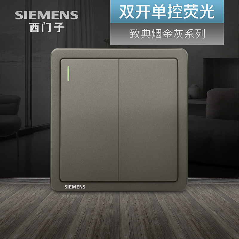 西门子双开单控带荧光开关 致典烟金灰银色家用二开电灯 双联面板