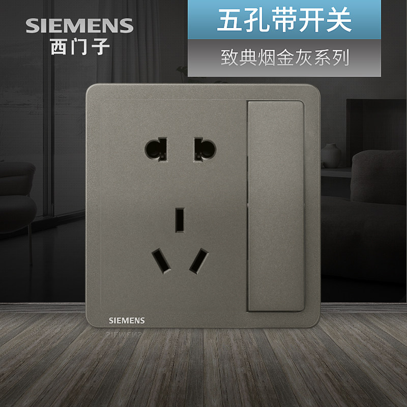 西门子五孔带开关单控插座 致典烟金灰银色10A二三插家用电源面板