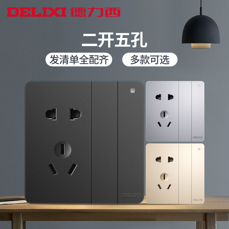 德力西开关插座一开5五孔16a空调家用usb暗装墙壁单双控86型面板