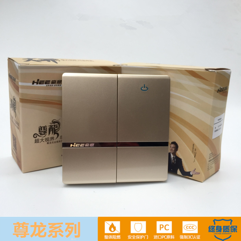HEE豪意开关插座二开双控二位单开 无框无影开关香槟金色86型开关