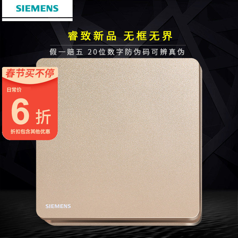 西门子开关插座面板睿致系列玫瑰金家用86型睿智无框一开单控开关