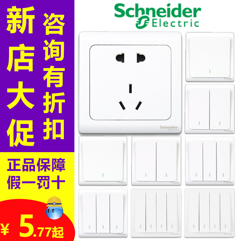 施耐德开关插座 新品轻逸一二三单开双控五孔16a空调面板家用多孔