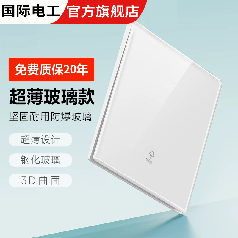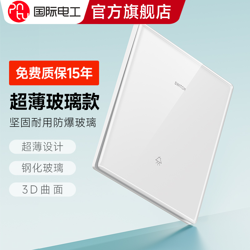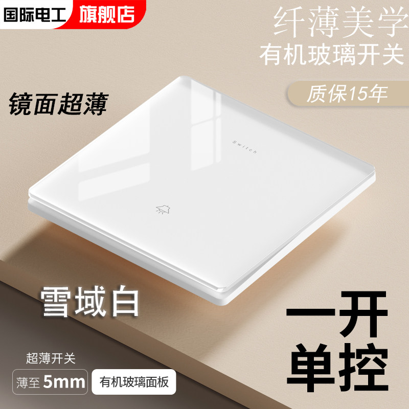国际电工86型超薄钢化玻璃单开电灯单联1位一开单控开关插座面板