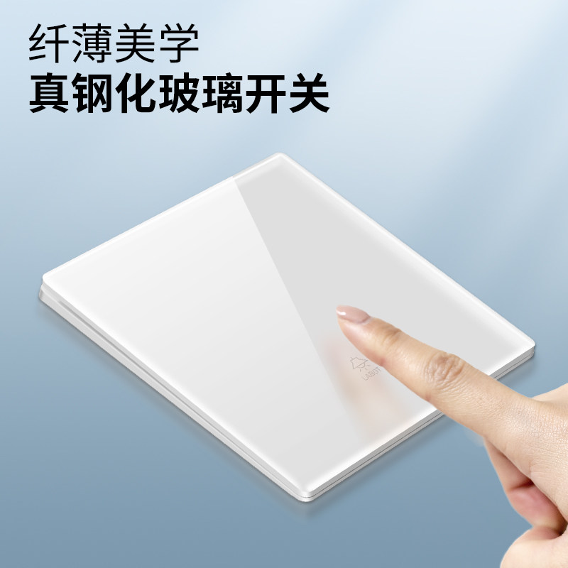 钢化玻璃灯开关家用电源电灯单开双开三开单控四开出线孔超薄面板