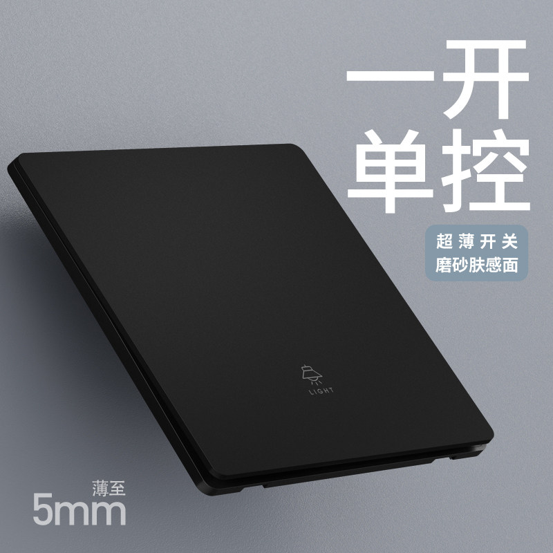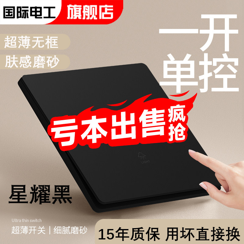 国际电工黑色肤感开关插座磨砂哑光面板一开单控暗装墙壁双控五孔