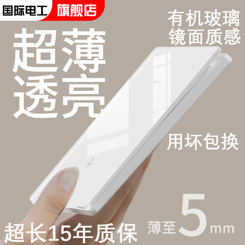 国际电工86型超薄钢化玻璃面板一开单控开关插座面板电源插座五孔