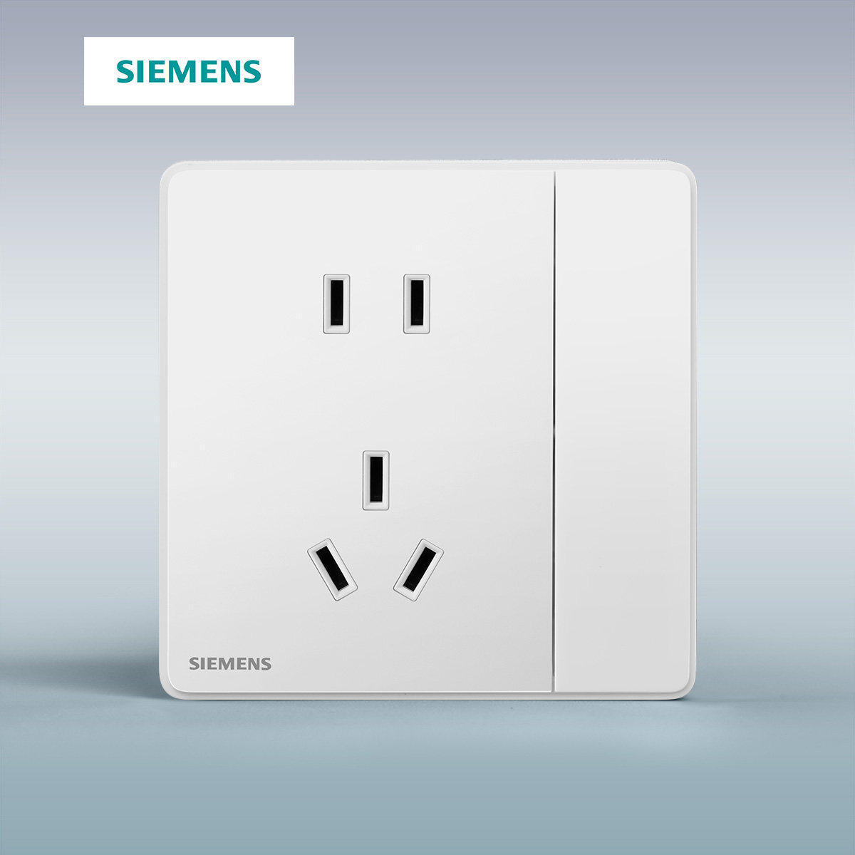 西门子一开10A五孔带单控开关插座面板大翘板 睿致银边炫白86型插