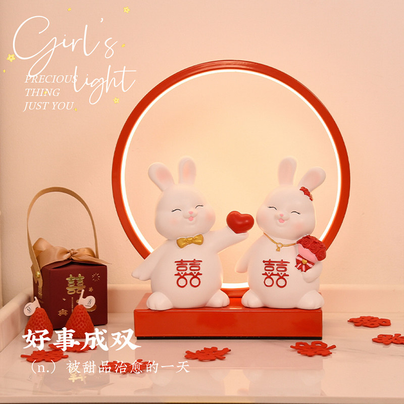 红色结婚台灯新人婚房床头灯卧室喜庆送新婚礼物新娘陪嫁长明命灯