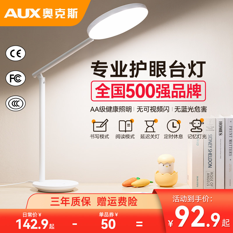奥克斯护眼台灯学习专用国AA级卧室阅读儿童学生宿舍写作业书桌灯