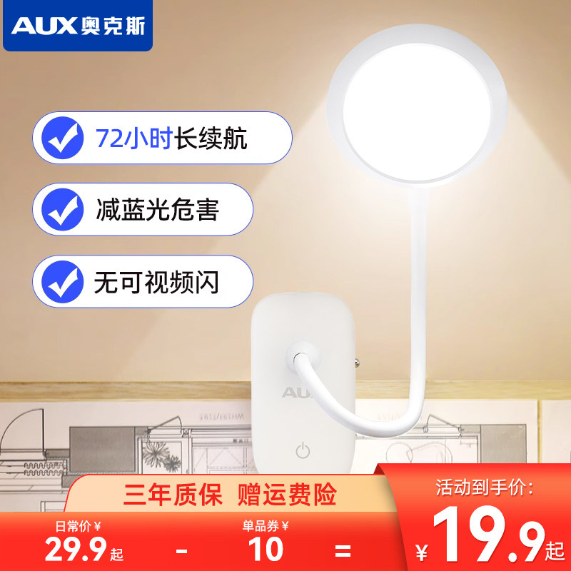 奥克斯可充电式小台灯大学生护眼学习专用宿舍卧室床头阅读灯夹子