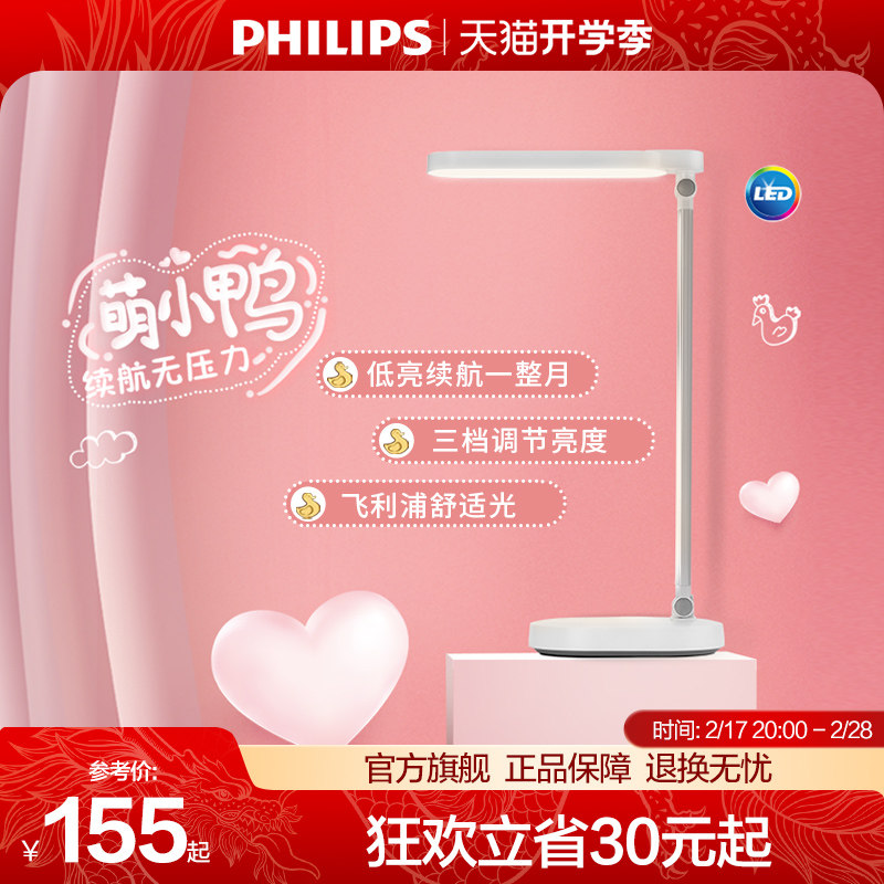 飞利浦护眼学习专用台灯卧室宿舍床头灯书桌充电插电阅读夹式夹子