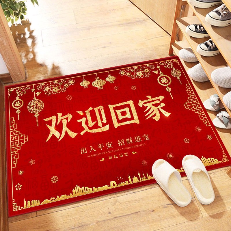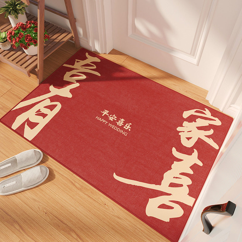 中式结婚地垫入户进门喜庆门垫卧室婚房脚垫家用红色喜字除尘地毯