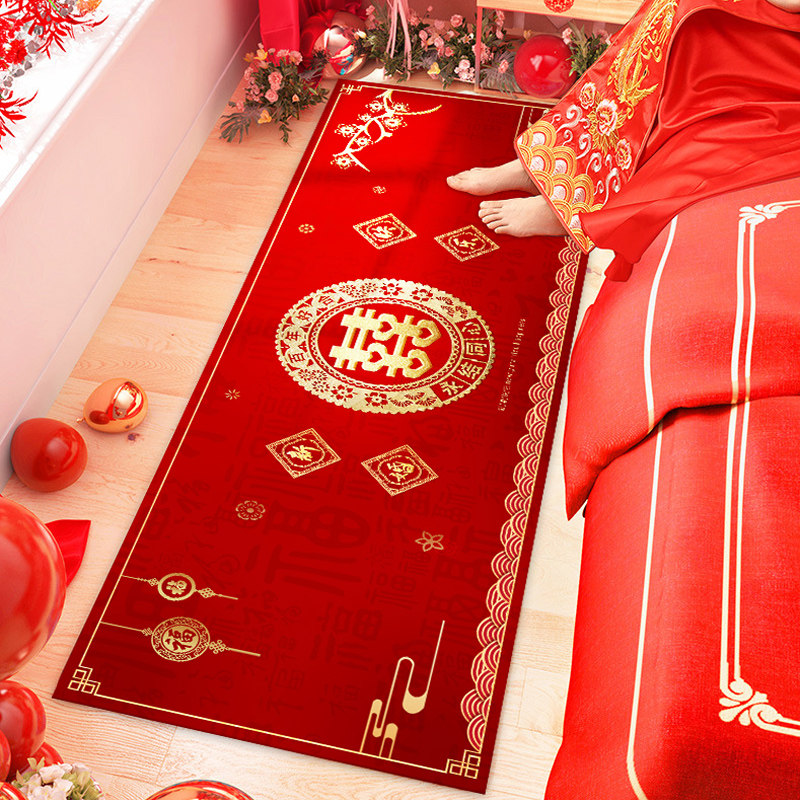 中式喜字结婚地垫红色喜庆入户门垫卧室床边地毯新娘婚房门口脚垫