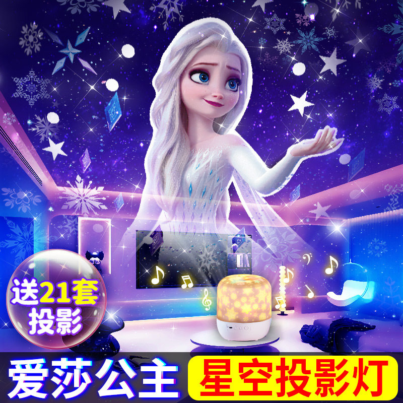 爱莎艾莎公主星空灯投影仪小夜灯儿童满天星女孩房间卧室睡眠台灯