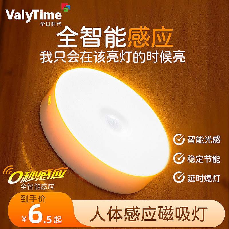 智能家用充电人体感应起小夜灯卧室床头走廊过道儿童光控led夜灯