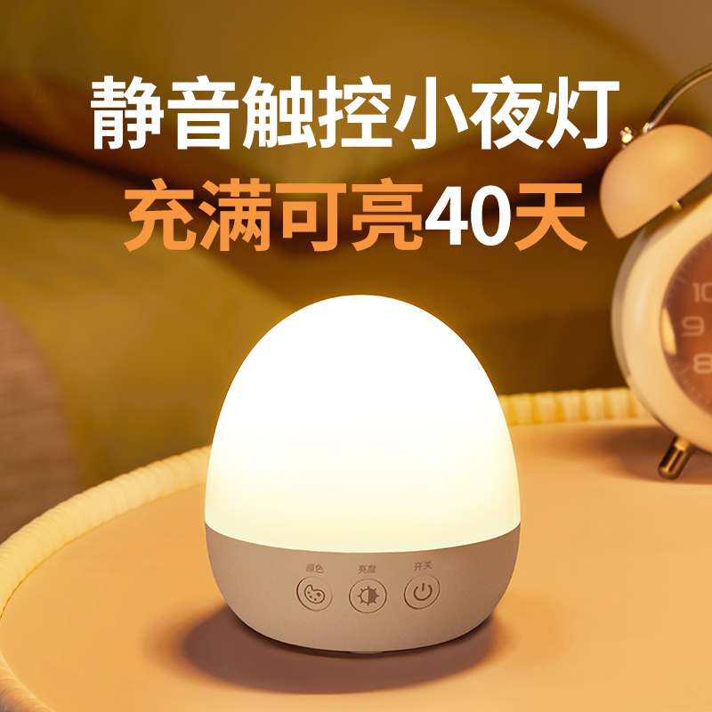 触摸感应宿舍床头小夜灯可移动拍拍充电式喂奶卧室学习不插电台灯