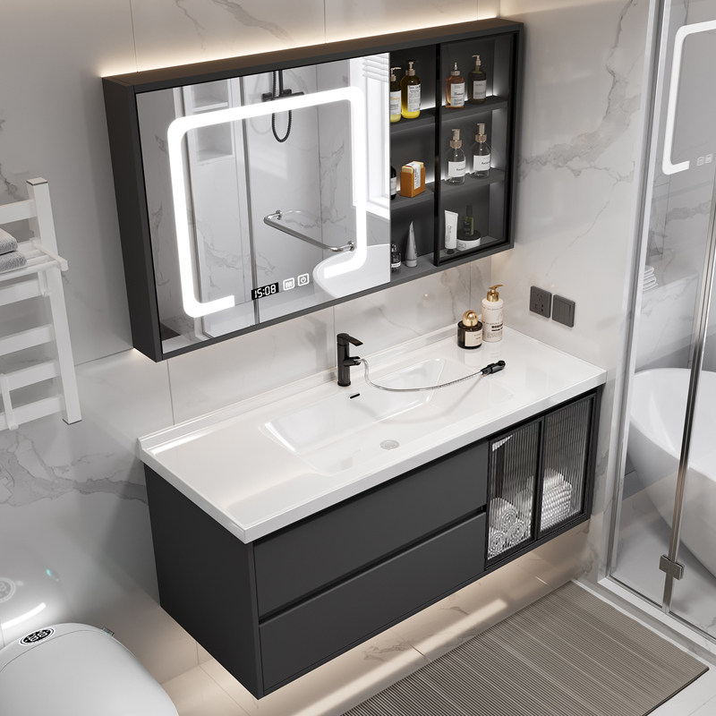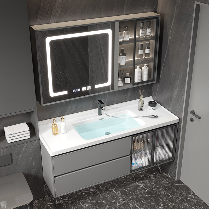 太空铝合金浴室柜陶瓷一体洗手盆柜组合现代简约卫生间洗漱台加厚