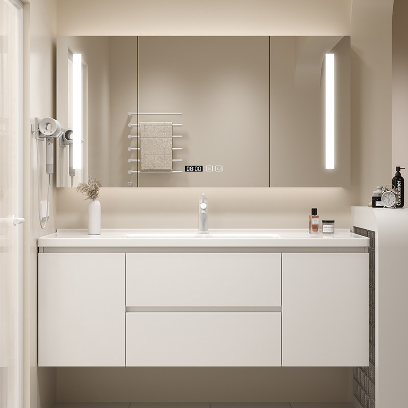 实木浴室柜陶瓷一体盆卫生间智能洗手池洗脸盆柜组合挂墙式洗漱台