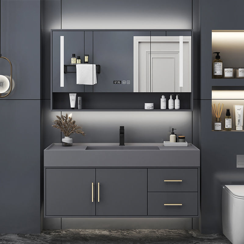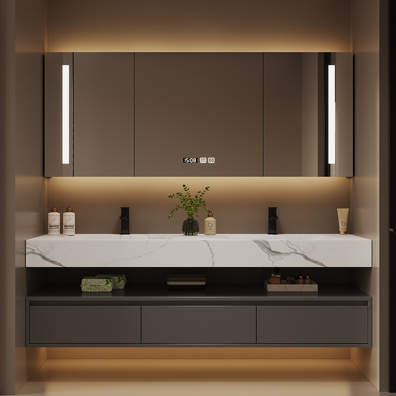 2023新款浴室柜组合智能镜柜轻奢岩石洗脸盆洗手盆卫生间洗漱台盆