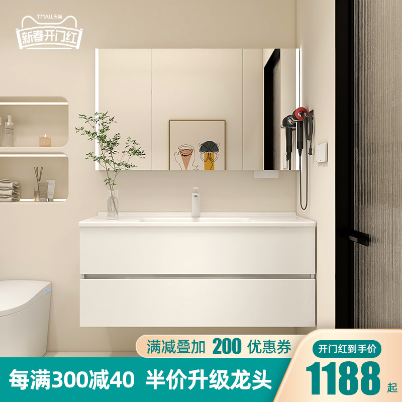 陶瓷一体盆智能浴室柜柜组合卫浴套装洗手洗脸面盆镜卫生间洗漱台