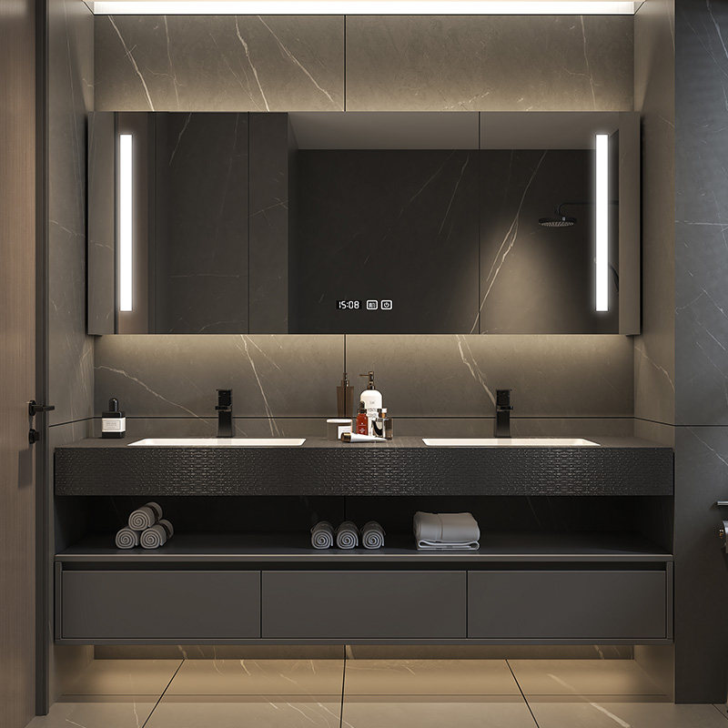 轻奢岩板浴室柜柜组合现代简约智能实木洗手洗脸面盆卫生间洗漱台