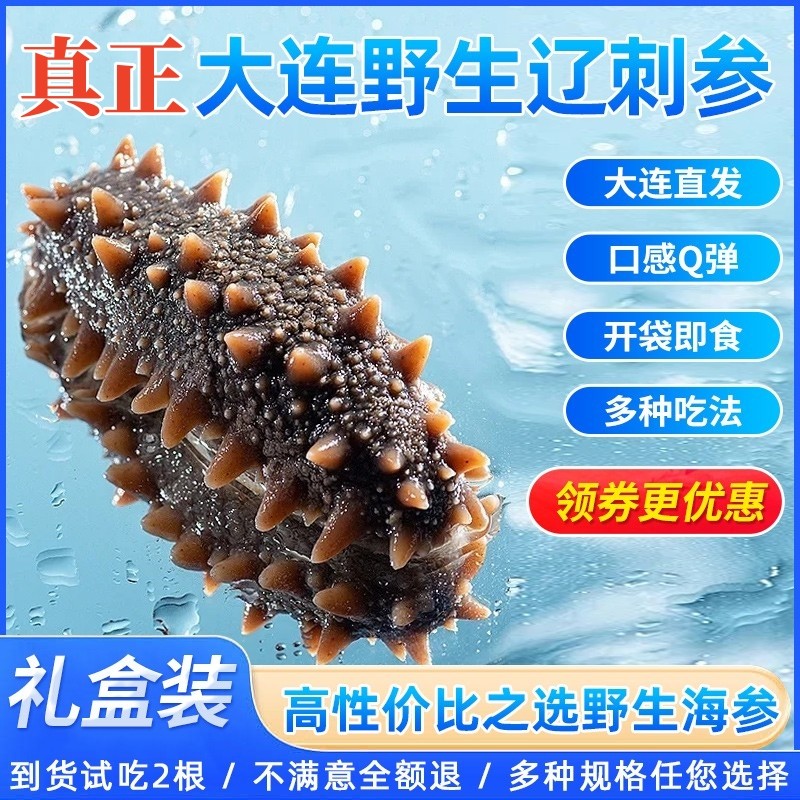 海参大连即食海参辽刺参鲜活野生辽参刺参礼盒装海参旗舰店