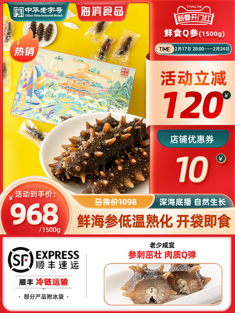【呼呼专享】北海湾买1斤送1斤即食海参底播大连刺参辽海生