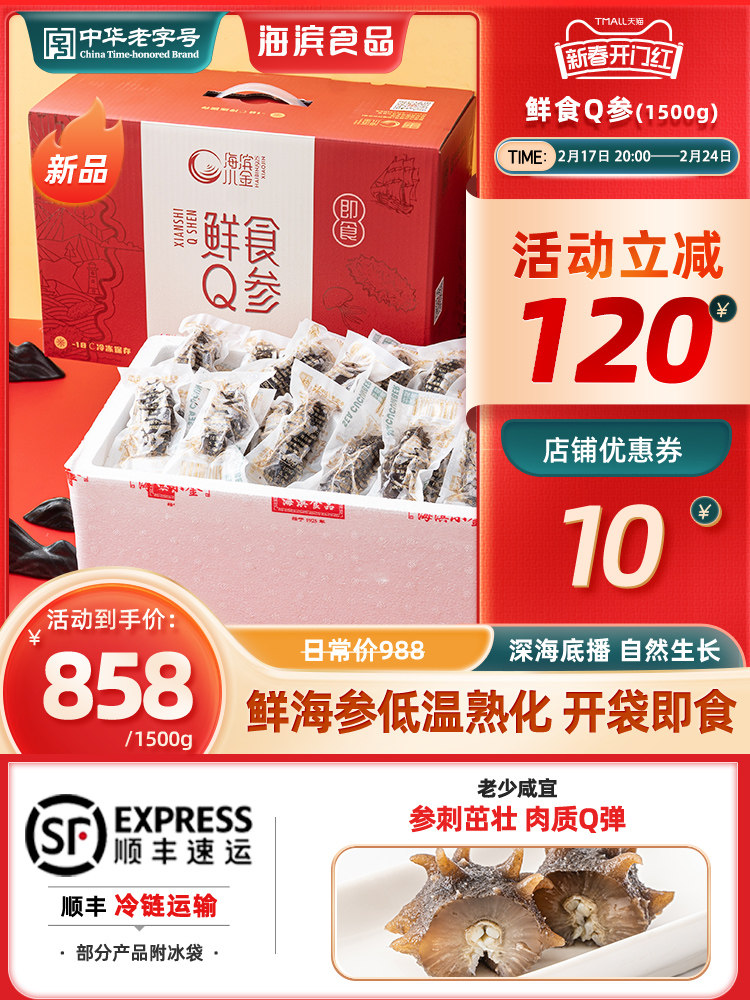 海滨小金23款鲜食Q参底播野生刺参冷冻即食海参礼盒级家庭装