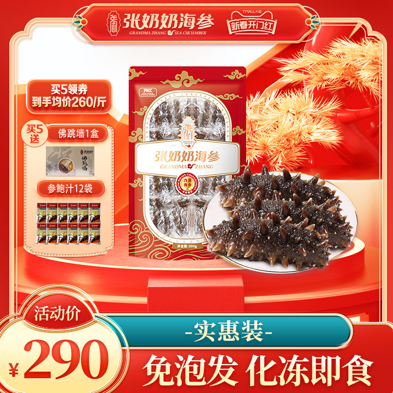 张奶奶大连即食海参500g礼盒非干鲜活辽刺参速食冷冻佳品特价年货
