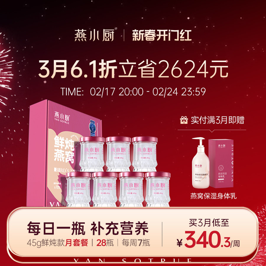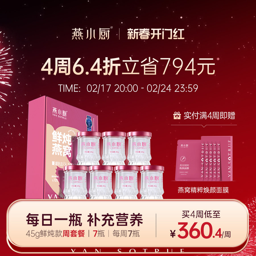 年货节小仙炖鲜炖燕窝青春款45g*7瓶周套餐冰糖/无糖孕妇即食营养