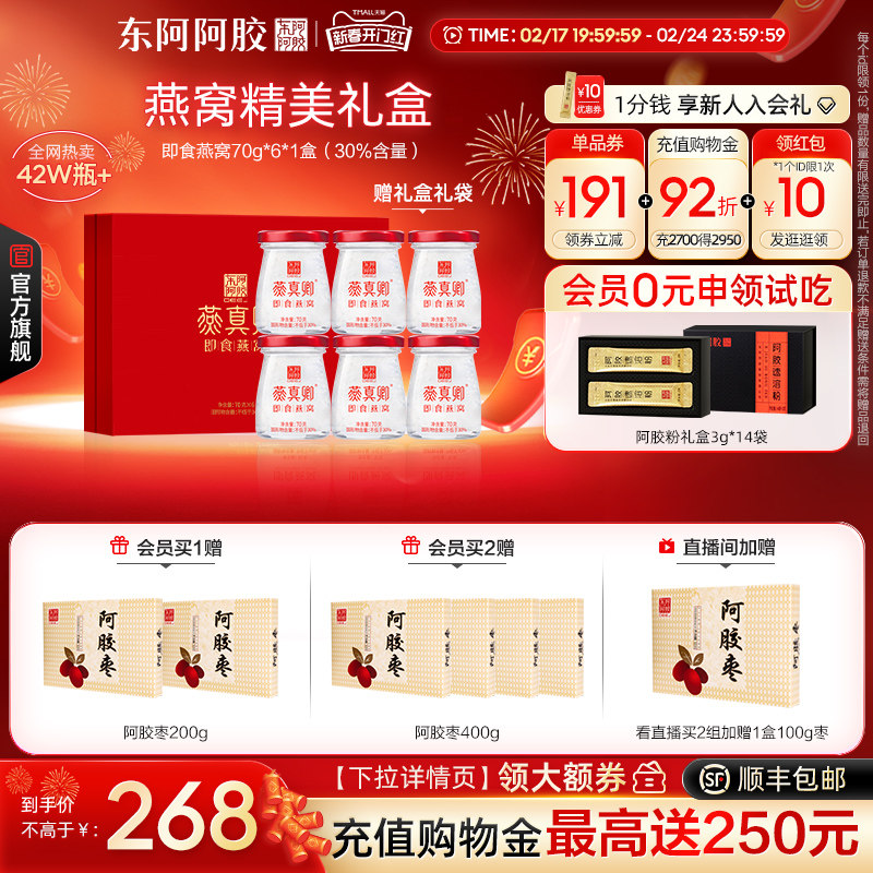 【东阿阿胶】即食燕窝420g礼盒装送礼营养补品长辈孕妇官方旗舰店
