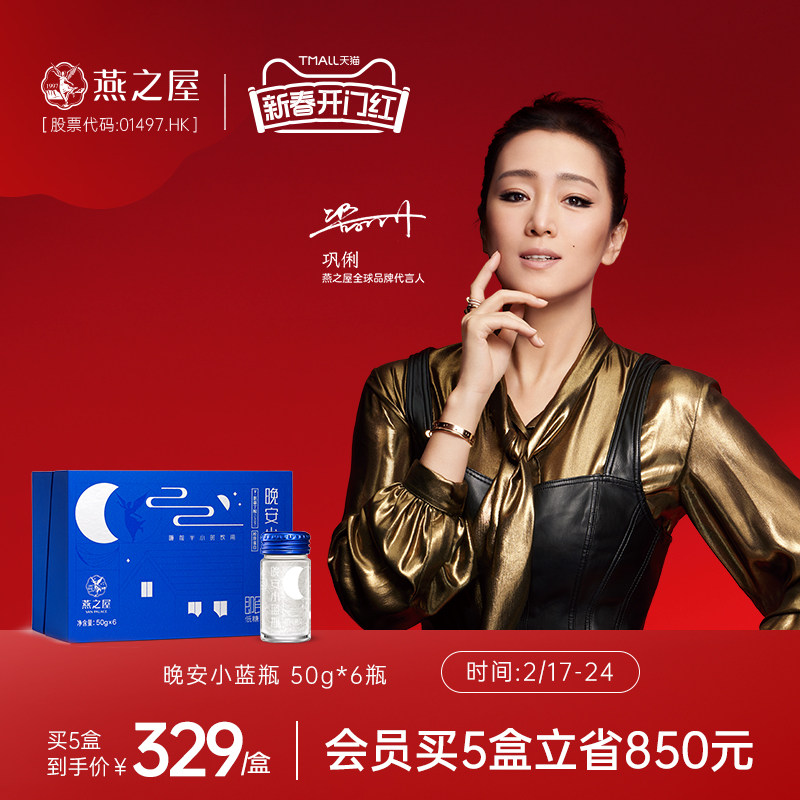 燕之屋晚安小蓝瓶即食燕窝饮料50g*6瓶 精华液燕窝饮月套餐