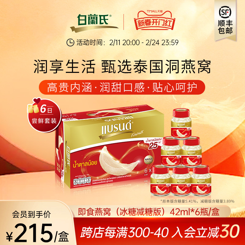 白兰氏泰国进口燕窝即食42ml6瓶装金丝洞燕燕盏孕妇进补增强体质