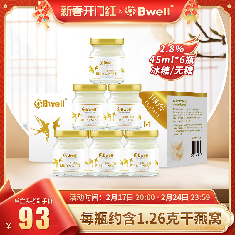 【单盒尝鲜】泰国Bwell2.8%冰糖/无糖即食孕妇滋补燕窝45ml*6瓶