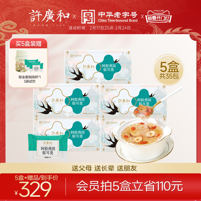 许广和阿胶燕窝银耳羹孕妇女生送礼冲泡即食冻干鲜泡燕窝饮105g