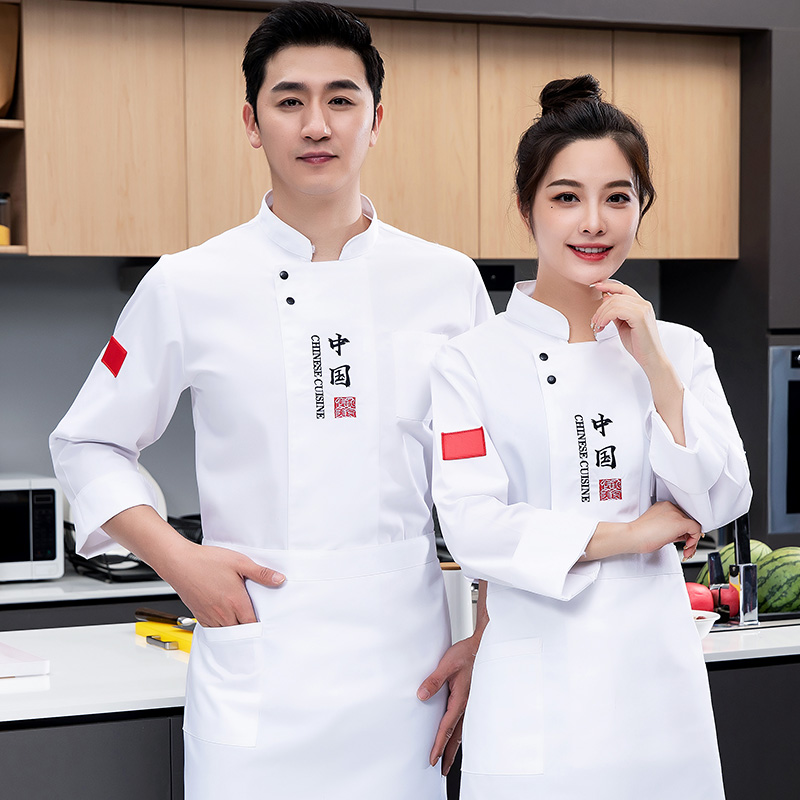 中式餐厅厨师服长袖男秋冬季火锅饭店餐饮服务员工作服套装女定制